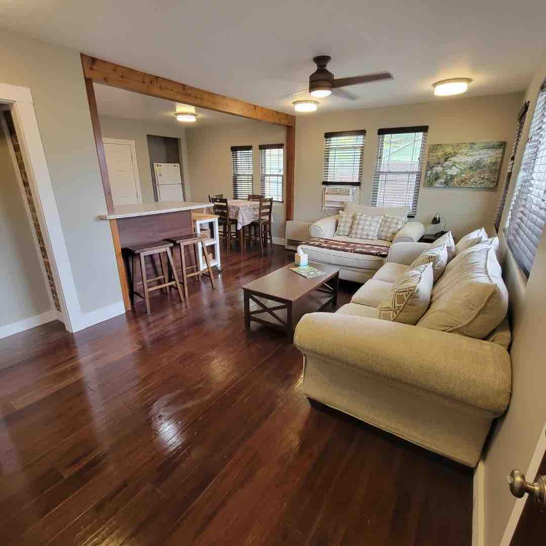 Удобен дом на малка квартална улица, на по - малко от миля от Авеню на гигантите в Хумболт Редуудс Стейт Парк. Домашни любимци и деца са добре дошли. Разполагате със самостоятелен двор и напълно оборудвана кухня, както и с перално помещение, ако имате нужда от него. В хола има печка на дърва за уютни вечери. Това голямо пространство лесно ще побере 4 или повече възрастни, плюс деца и домашни любимци.