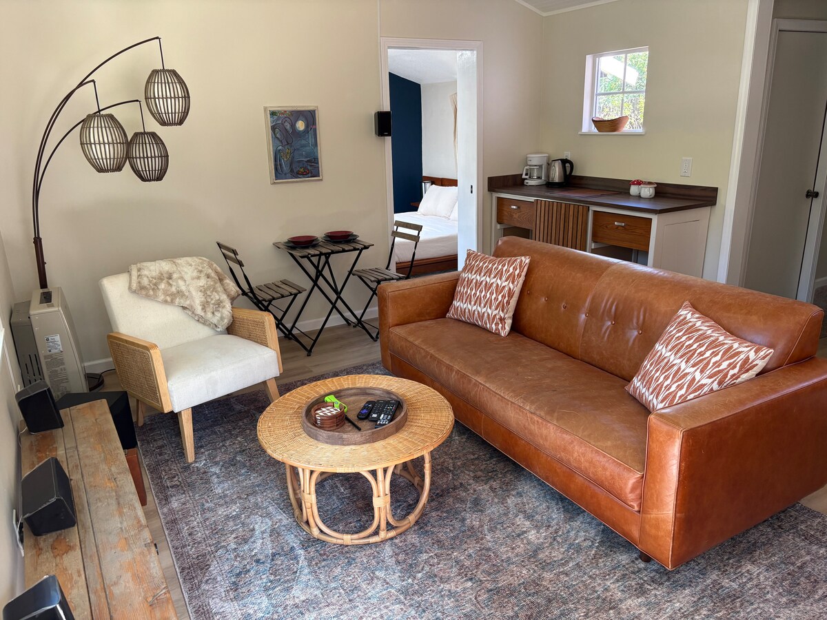 Ремонтирана модерна дървена колиба, сгушена в частна секвойна горичка близо до южния край на световноизвестното „Авеню на великаните“ в град Миранда. Перфектното място да се отпуснете и да се отпуснете след дълъг ден на дейности. Насладете се на големия, луксозен душ с плочки с огромна душ кабина с валежи и 6 пръскачки за тяло, първокласно легло и спално бельо, напълно заредена кухня с всички нови уреди, включително кафемашина Breville Vertuo с кафе капсули и селекция от чайове. ПВТ, ограден във вътрешен двор с барбекю на газ и хидромасажна вана