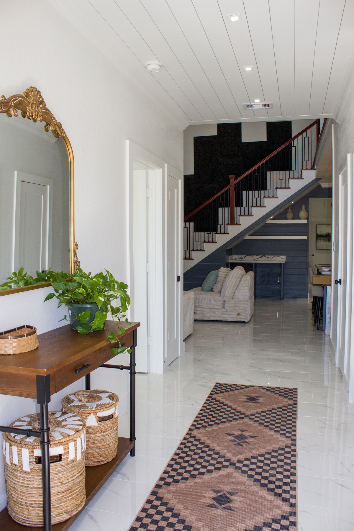 Без такси за почистване! Този луксозен, модерен интелигентен дом разполага с 3 спални с 2 бани, 85-инчов телевизор Samsung с голям екран, съраунд звук Dolby Atmos, маса за пинг-понг, билярдна маса, корнхол, футбол, барбекю и др. Домът разполага с 3 спални и 2 бани, както и с всекидневна и кухня. На стълбището има бар и футбол на маса. Домът е на 16 км източно от центъра на града. Само на кратко разстояние с кола от Minute Maid, TDECU и др.! Това е дуплекс. Ако искате да резервирате и втория етаж, уведомете ме