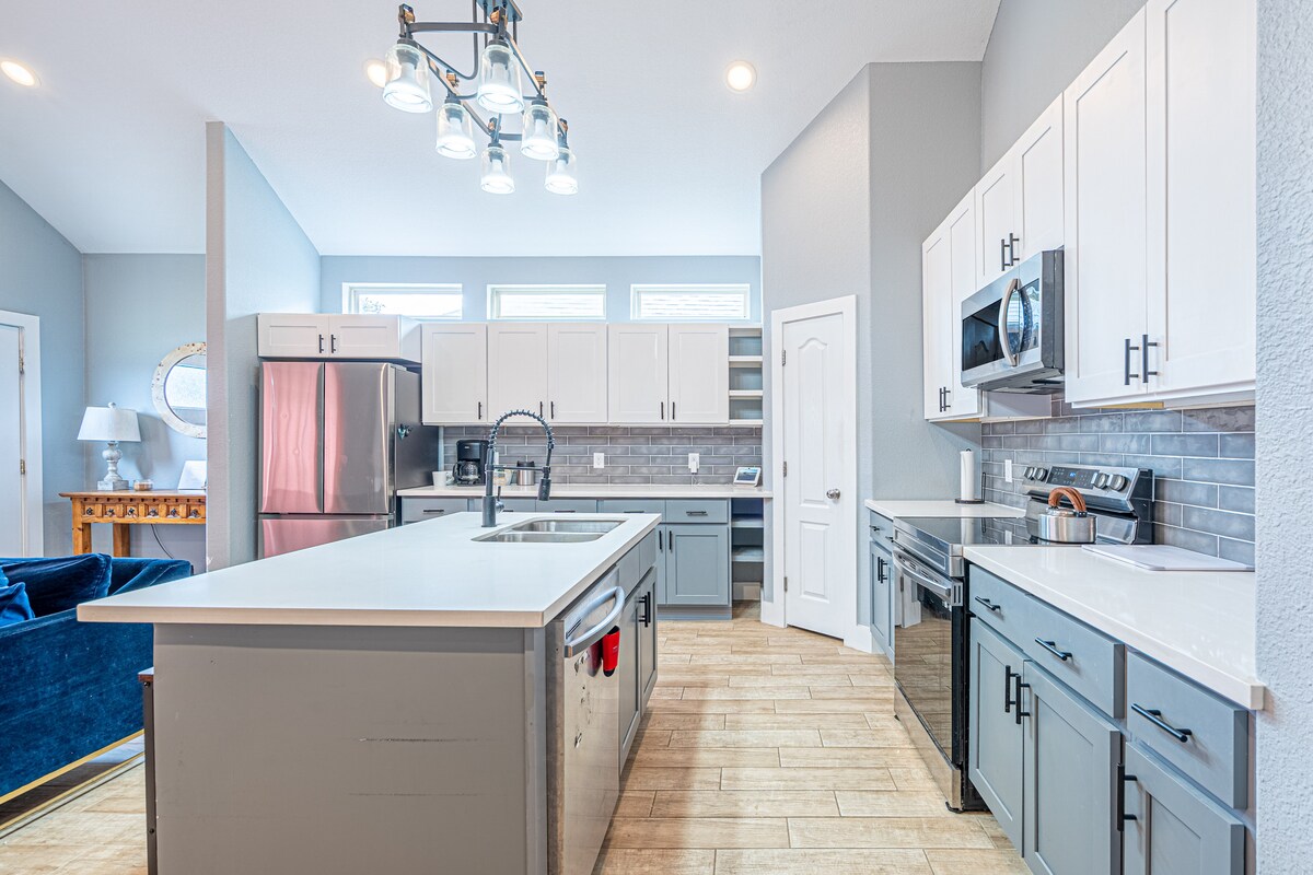 Добре дошли в „Уединение за градски каубои“! Насладете се на този новопостроен дом с всички модерни удобства, които можете да поискате. Този нов дом разполага с 3 спални и 2 1/2 бани за вашето удобство. Този дом ще побере до 6 души, като една от спалните е стая за игри! Насладете се на кухнята с отворен план и забавлявайте семейството си на големия кухненски бар. Намира се само на няколко минути от Кемах Бордуолк, центъра на Хюстън и най-добрите места за риболов в Бейтаун. Елате и отседнете в новото място в Пасадина, което трябва да видите в Airbnb!