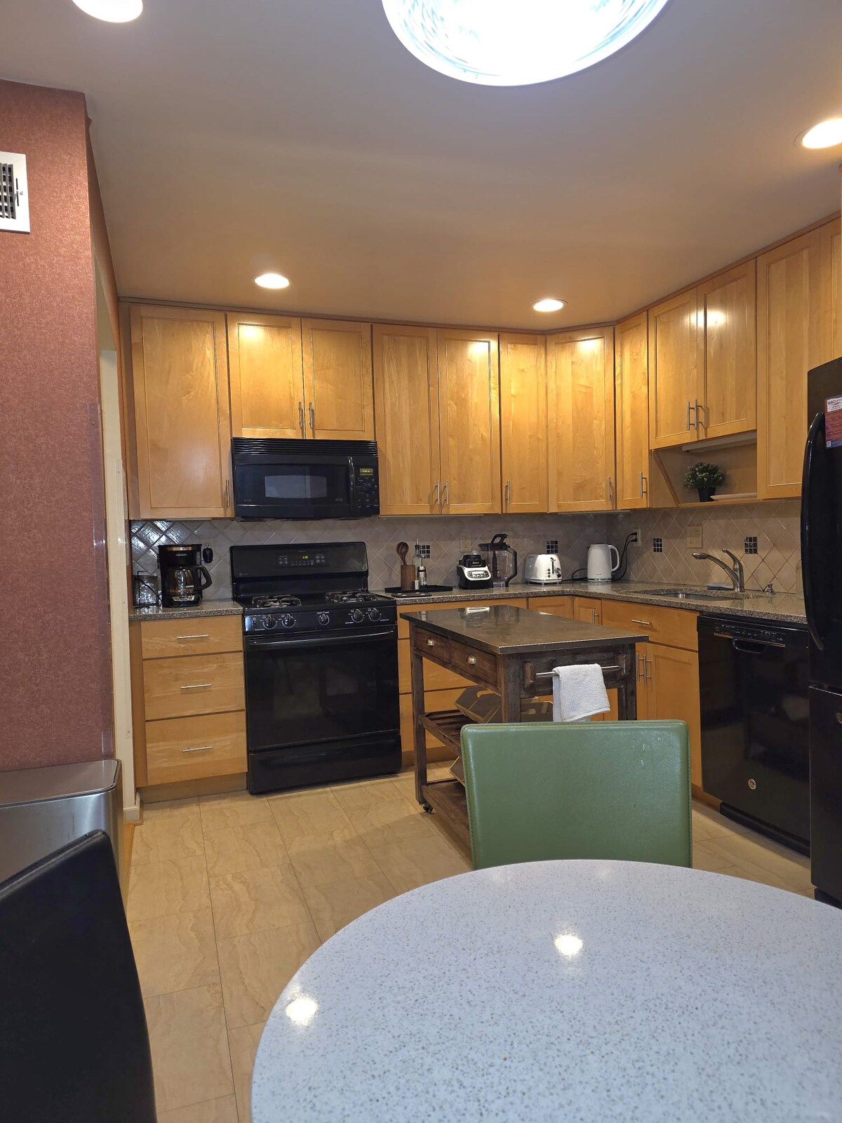 Приветстваме ви в просторен и самостоятелен сутеренен апартамент със собствен вход и самостоятелно настаняване. Настанете се удобно с гостите си в място, което разполага със спалня с двойно легло king size, 85-инчов смарт телевизор, мек секционен диван, самостоятелна тоалетна, баня и кухненски бокс – всичко в едно и също помещение. Нито едно от удобствата не е споделено. Напълно оборудваната кухня разполага с всичко необходимо, за да готвите и затопляте ястията си. Апартаментът за гости е целият сутерен, който е част от по-голям дом, където живее домакинът.
