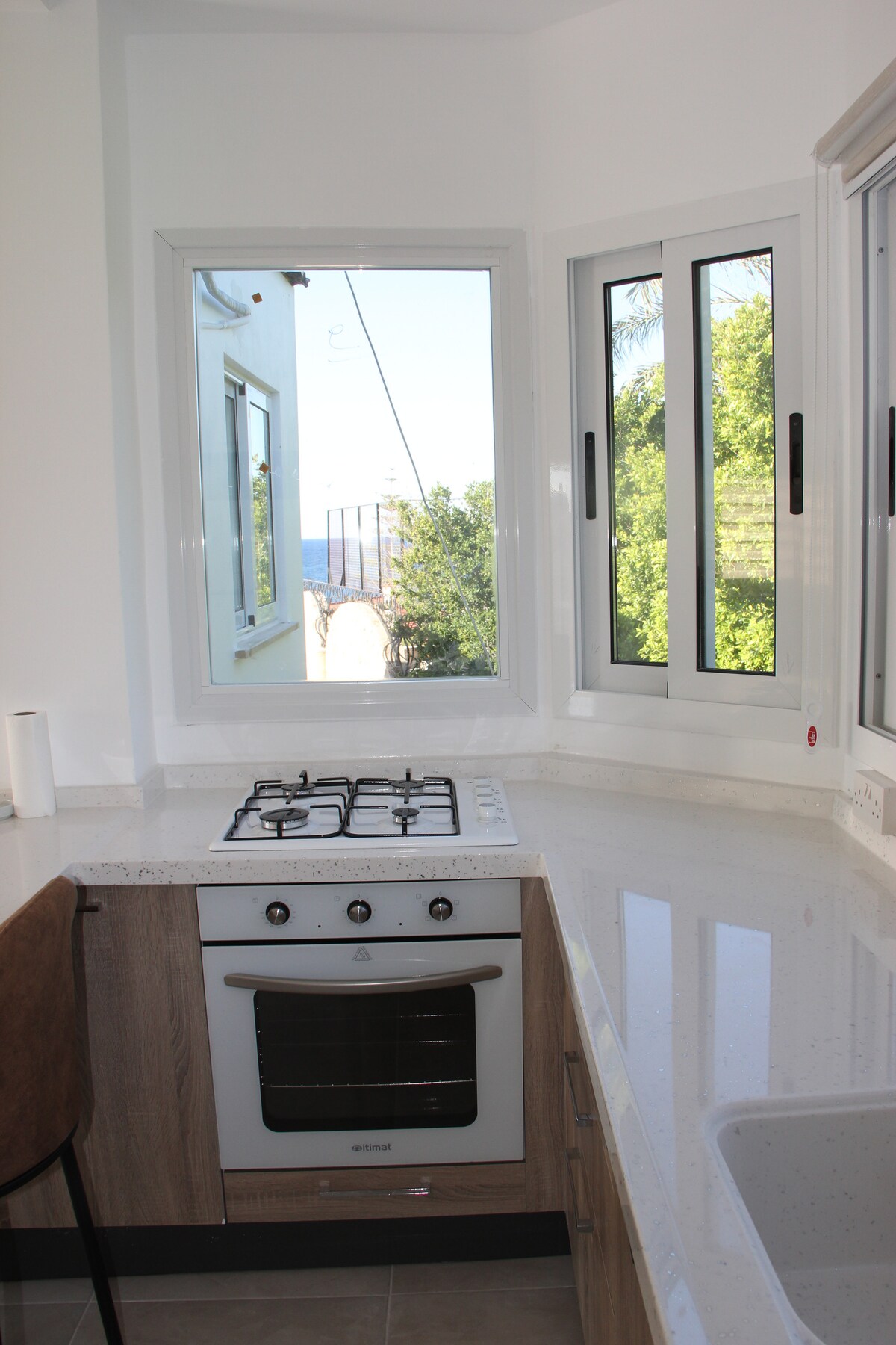 Ще ви хареса да се насладите на този модерен, стилен, добре оборудван, добре обзаведен, винаги напълно чист и много вкусен апартамент с 1 спалня на перфектно място с пълна енергия и щастие. Комфортът и насладата са на фокус. Местоположението е перфектно, само на 1 минута пеша до главния път и автобусите до Гърне. Пясъчен плаж, Мерит Хотел Казино, пазар са на 2 min. разходка, супермаркет на 10 min., голям пазар на 4 min. разходка, риболов на 1 min. Кирения е само на няколко минути с кола. Комплект за добре дошли с вино.