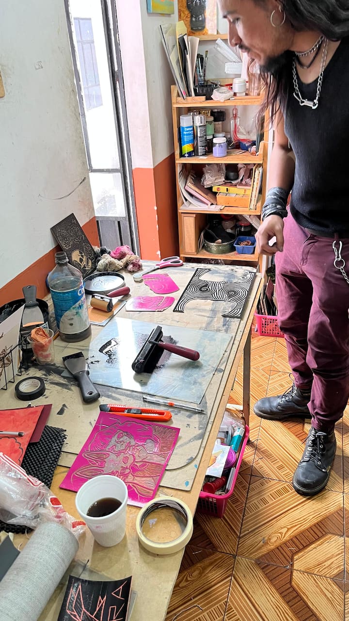 Посвещавам се на създаването на гравюри, които събуждат спомени, емоции и дълбока любов към ръчното изкуство. Аз съм ръководител на областта на гравюрата в Cenit Art, в Пуебла, където споделям тази техника с тези, които искат да открият изкуството от корените му. Моята работа съчетава традиция и визуален разказ, за да се свърже с колективната памет.