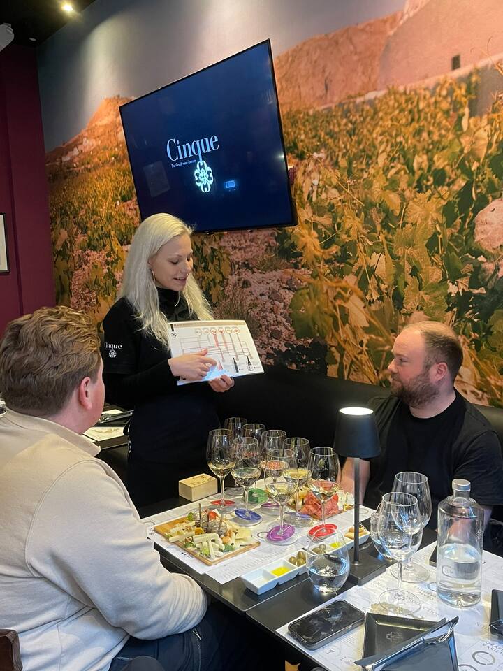 Гостите ще имат възможност да опитат внимателно подбрани вина от цяла Гърция и да ги комбинират с местно сирене и колбаси, представени от опитни винарски експерти на английски език.