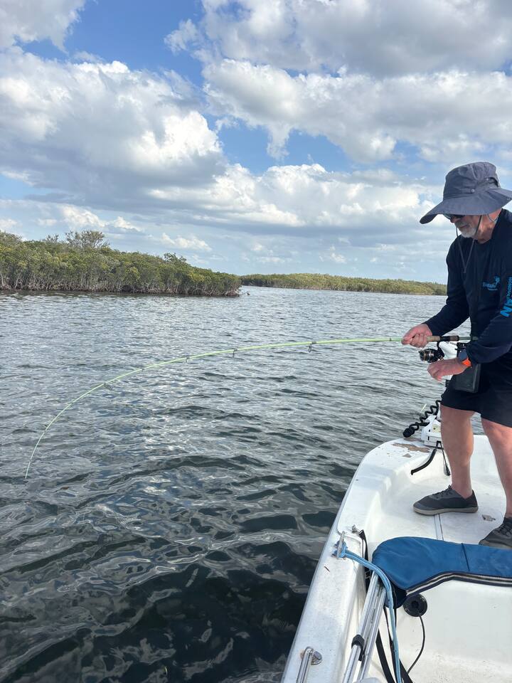 Насладете се на гледките към застоялите води на крайбрежието, докато търсите крайбрежни видове като морски костур, пъстър морски пъстърва, снук, овча глава, черен барабан и гребени през лятото.