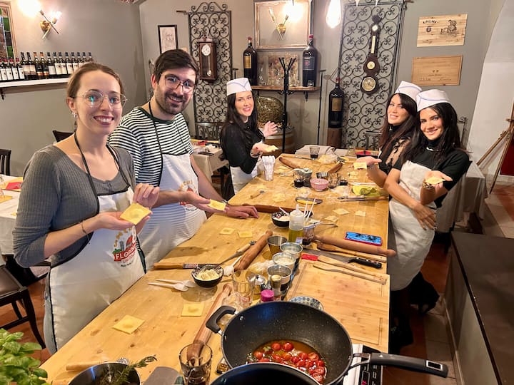 Съпругът ми и аз имахме страхотно изживяване, докато се учехме да правим паста без глутен с Роберто. Той е много обнадеждаващ, забавен и знаещ. Научихме се как да смесваме, разточваме, режем на ръка и оформяме различни видове паста. Любимата ми е пълнената папска шапка. Трите различни вида сос бяха вкусни. Горещо препоръчвам да посетите курса на Роберто, ако обичате паста, но трябва да е без глутен. Той ни предостави видеоклипове и снимки, които ни е направил по време на изживяването с приготвянето на паста. Страхотни спомени!