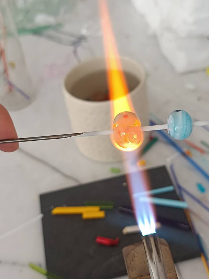 В момента провеждам еднодневни и дългосрочни обучения по стъклени мъниста, издухване на стъкло и витраж в собственото си студио.