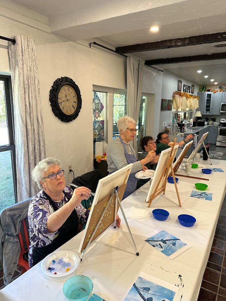 Отдъхнете си в красив дом с художествено студио и се научете да рисувате с акварел, акрил и маслени бои. Всички консумативи са включени. Ще посетим художествения музей „Бигс“, който е на пешеходно разстояние.