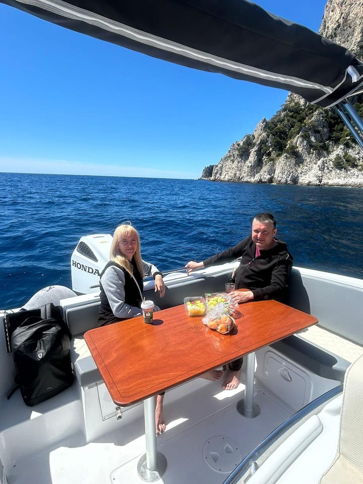 Включете се в тази вълнуваща обиколка с лодка до остров Капри! Ще плаваме, за да открием скритите чудеса на острова, като ще имаме спирки за плуване и свободно време да разгледаме града.