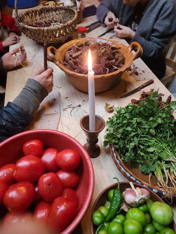 Ще огледаме трапезарията си за растения, цветя и билки, за да приготвим тамале.