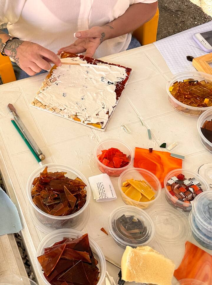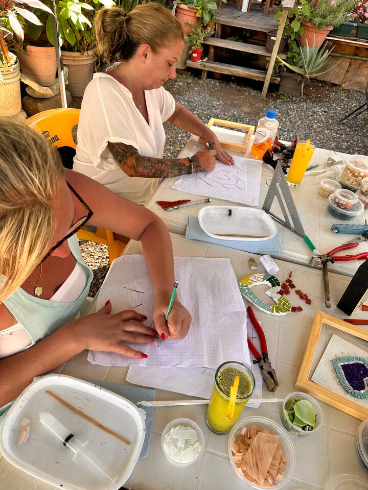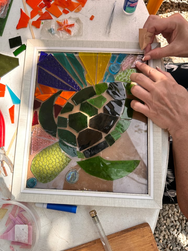 Създайте мозайка с техниката стъкло върху стъкло, проектирайте и изберете цветовете, научете се да използвате инструментите и материалите. Не е необходимо да имате предварителни познания, включени са материали и закуска.