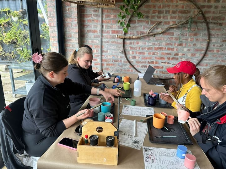 Боядисайте и украсете собствените си глинени изделия – чаши, чинии и други, които може да бъдат дарени за нашия проект. Изразете творчеството си с приятен обяд в най-спокойното място навън или на закрито.