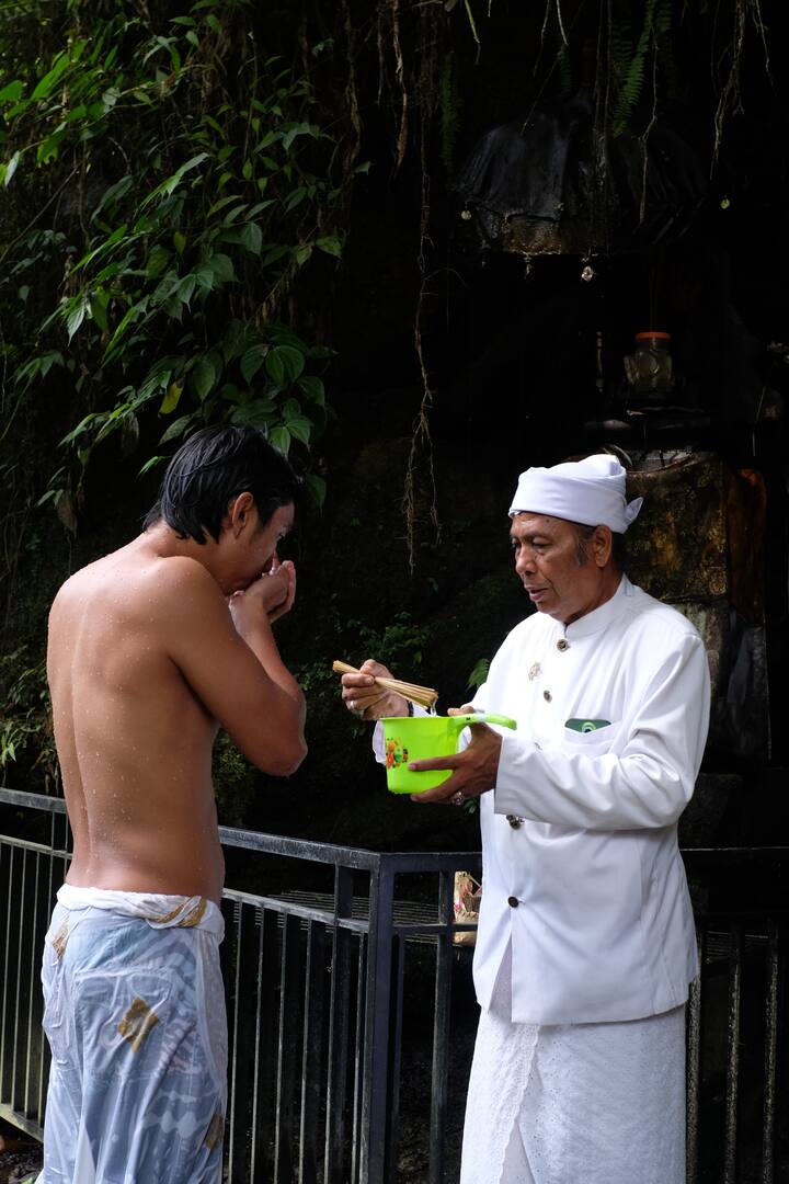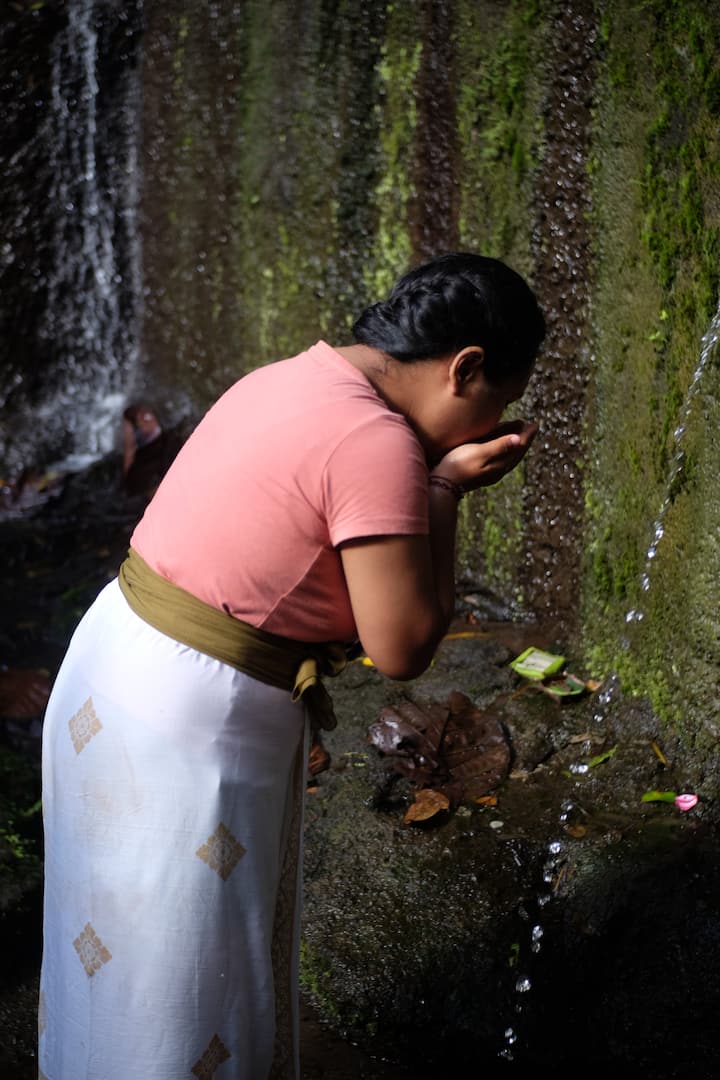 Насладете се на мелукат – традиционен балийски ритуал за пречистване с вода, воден от местен свещеник сред древни руини и скрити долини.