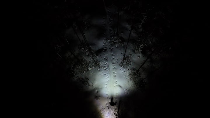 Плъзнете се през спокойни гори с челник до замръзнало езеро, след което се стоплете край огън с горещи напитки и храна.