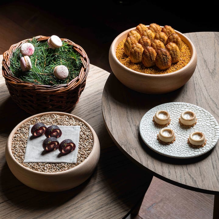 Насладете се на меню от 3 ястия с вино, подбрани от майстор готвач, удостоен с 3 звезди Michelin, и неговия винен директор Лукас Гергес, представящи планински съставки, традиции и етична гастрономия.