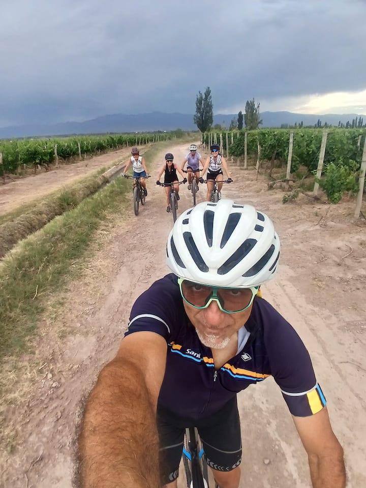 Моята кариера се подкрепя от обиколки, адаптирани към нивото на участниците, от 7 години, аз бях първото преживяване с велосипед на Airbnb в Мендоса.