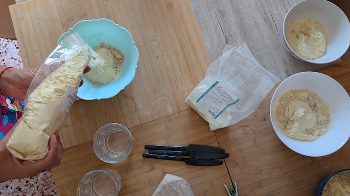 Това преживяване се провежда в частен дом, кухнята е отделна от работната зона.