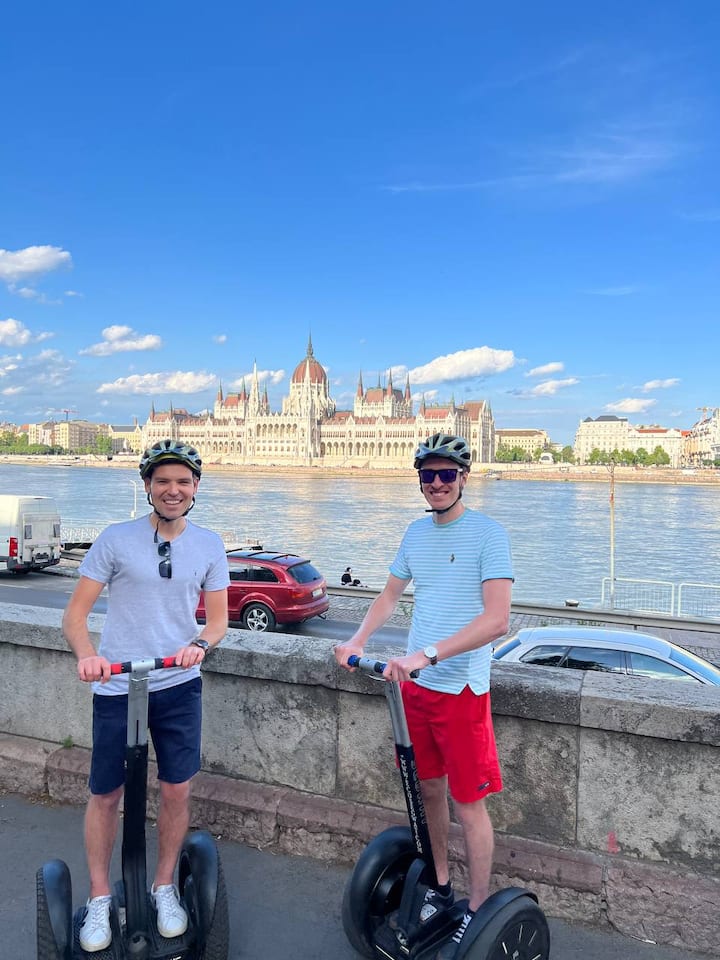 Ние сме лицензирани екскурзоводи със сегвей в Будапеща с няколко години опит в провеждането на екскурзии за малки групи. Движим се по внимателно подбрани крайречни маршрути, като се фокусираме върху безопасността, ясните инструкции и гладкото каране. По време на обиколката споделяме добре проучена местна история, културен контекст и практически прозрения за забележителностите на Будапеща край река Дунав.