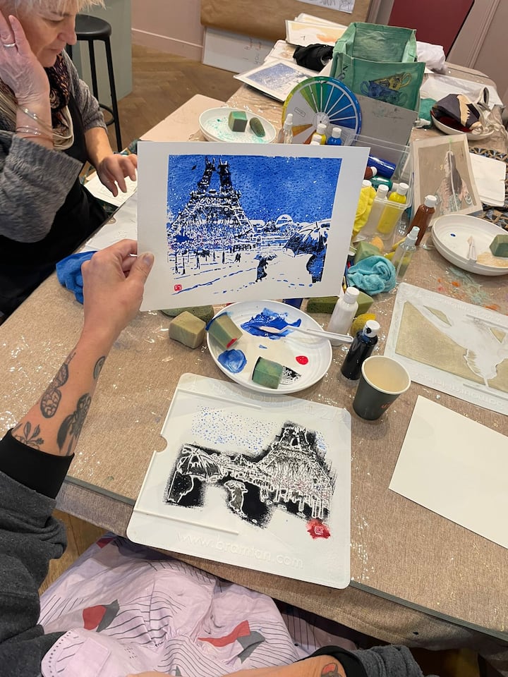 Тази художествена работилница беше страхотна! Брам и Али предоставиха богат избор от вдъхновяващи щампи, от които да избирате, и улесниха намирането на нещо, което да резонира лично.