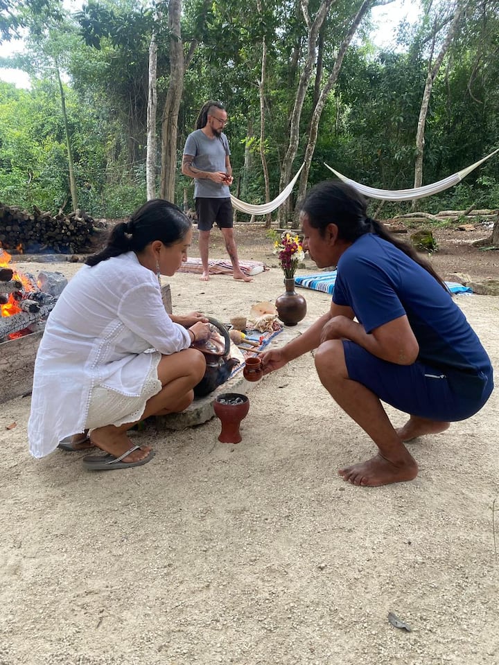 В темаскалът се живее в пространство на дълбока връзка, където топлината и парата ни канят да освободим напрежението. Приемът на какао придружава лекарството към сърцето и връзката с Майката Земя.
