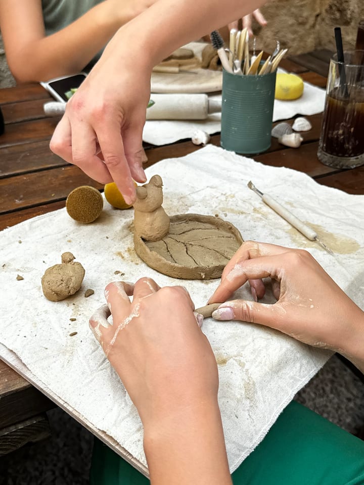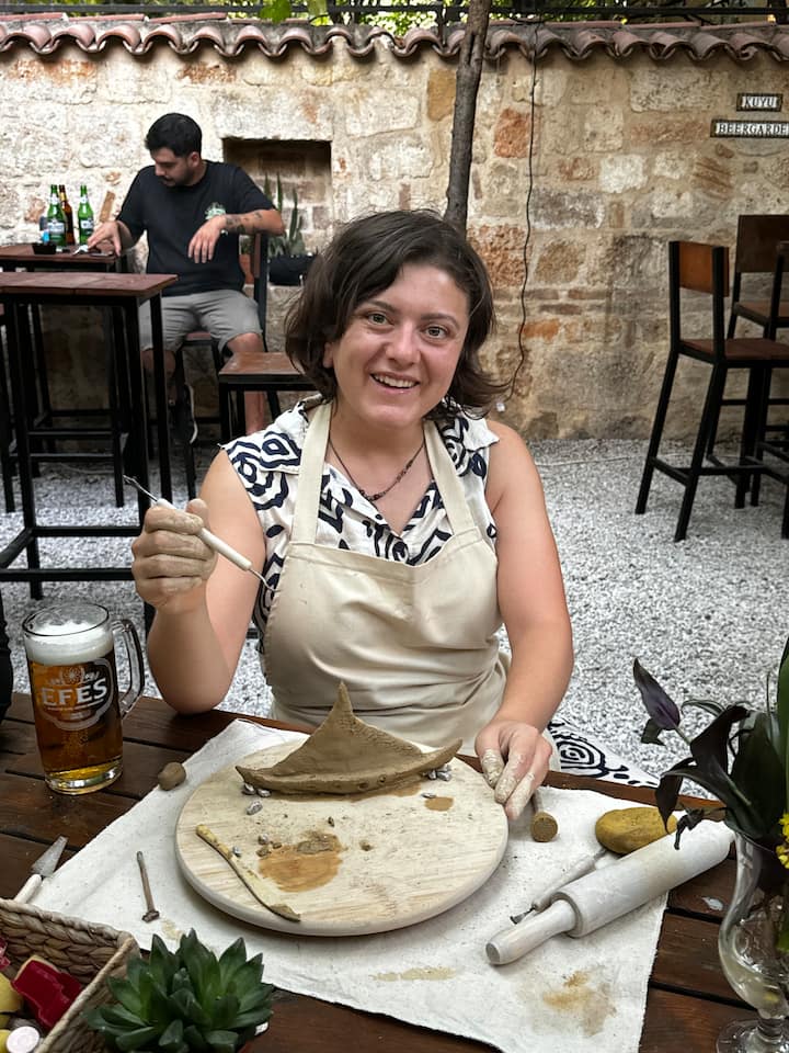 В Анталия изваяйте човешка фигура, абстрактна форма или животно от глина. Изграждане на арматурна структура. Оформяне и добавяне на повърхностна текстура със шпатула. Занесете мократа си скулптура у дома. Турски чай.