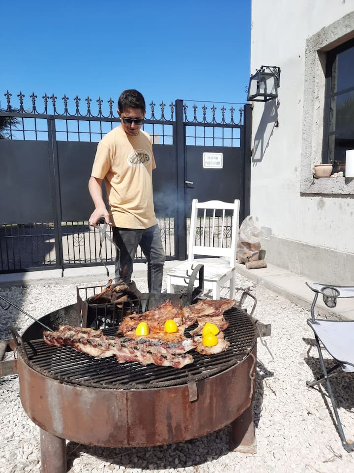 Аржентинско барбекю в моята вила в Мендоса. Емпанади, чоризо, морсиля и три вида месо на скара. Дегустация на Малбек, Каберне и пенливо вино в интимна и спокойна атмосфера.