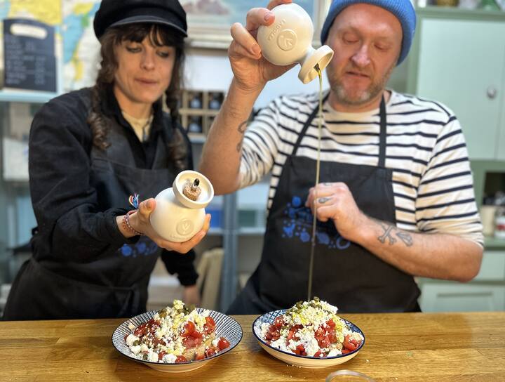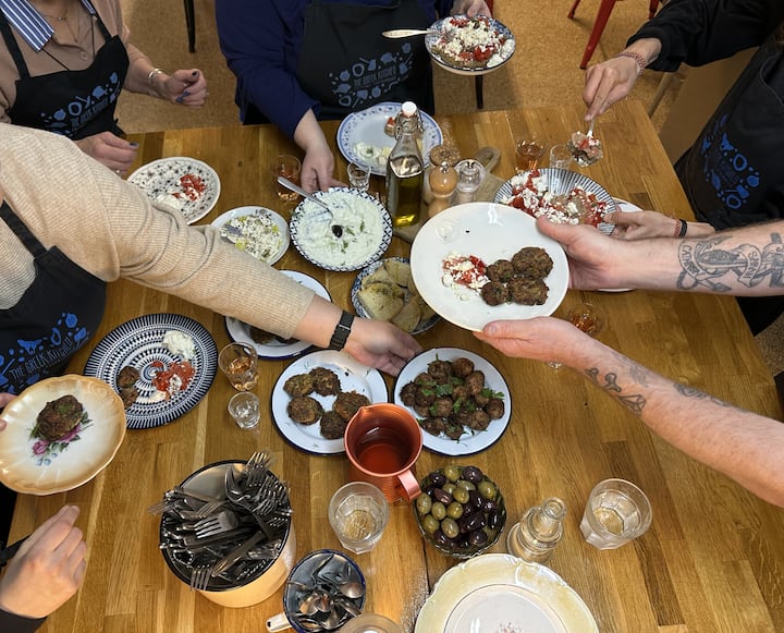 Пригответе тиквички, кюфтета и дакос с опитен гръцки домашен готвач, преди да се насладите на пиршество с местни вина и алкохолни напитки.