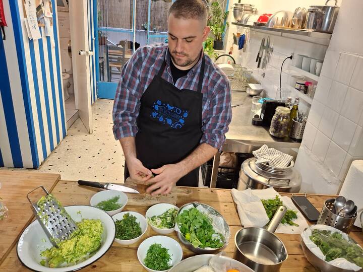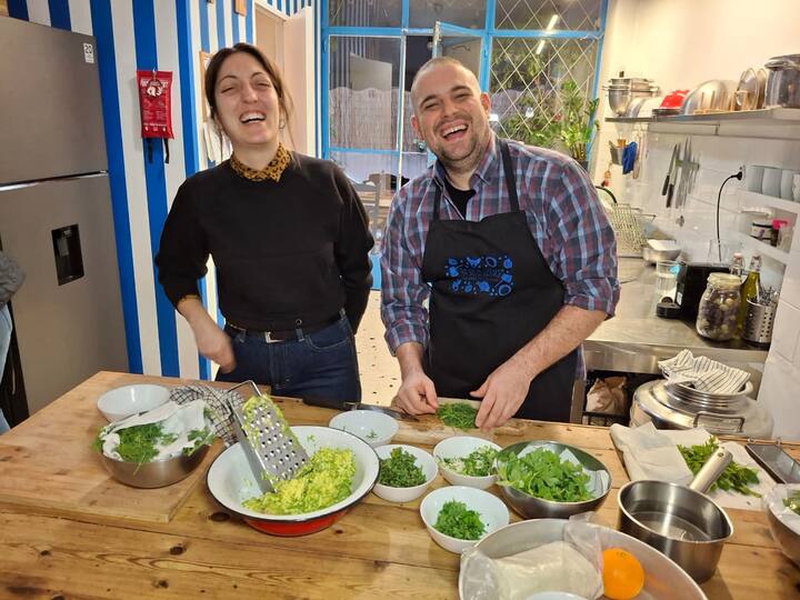Както повечето гърци, научих всичко от родителите си в малката ни кухня, а сега ръководя прекрасно кулинарно училище в сърцето на Атина. Гръцката кухня е отворена от 10 години и е най-добрият малък кулинарен клас в града!