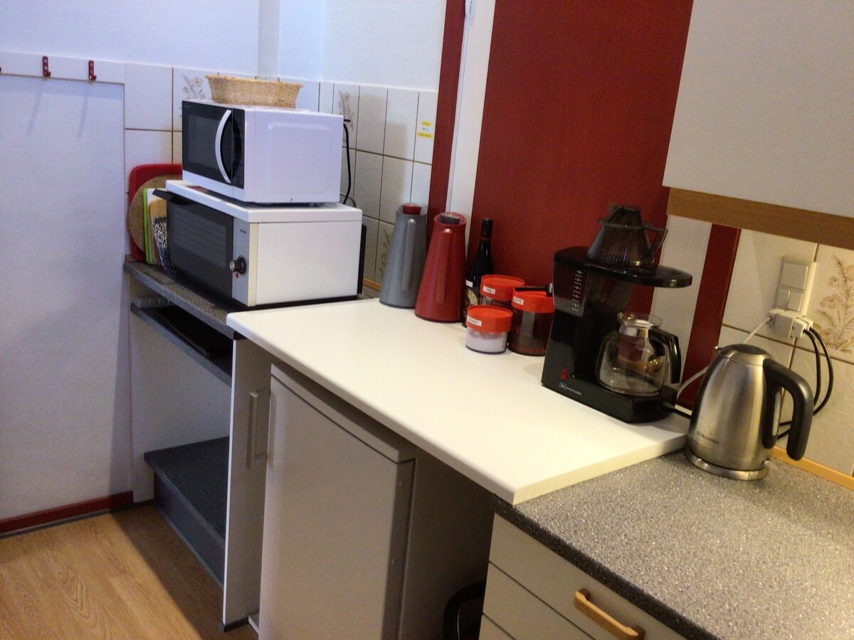 Ваканционна стая в задната къща със самостоятелен вход и баня. Близо до автобус, пазаруване и пристанище. Голяма стая с двойно легло и трапезария за 2 възрастни. Комбиниран вход, душ и кухненски бокс с микровълнова печка, електрически чайник, тостер и хладилник. Вечеря за двама души. Газов грил и частно външно пространство за хранене за 2 души ПУШЕНЕТО НА MATRIKEL Е ЗАБРАНЕНО. Хипоалергичен дом - без животни. Спално бельо, кърпи, изпрани без парфюм. Цена, вкл. спално бельо/задължително почистване. Овербо минава през вътрешния двор, за да стигне до апартамента си