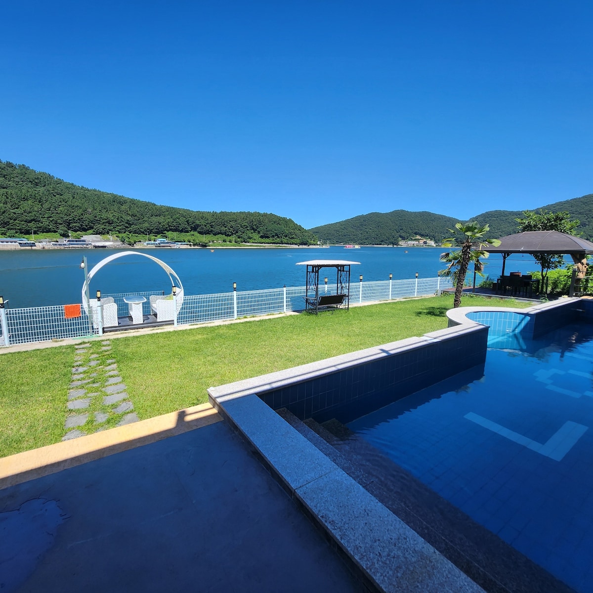 바닷가 앞 오직 한팀만을 위한 야외풀장 , 불멍 , 잔디마당 힐링하기 좋은 독채