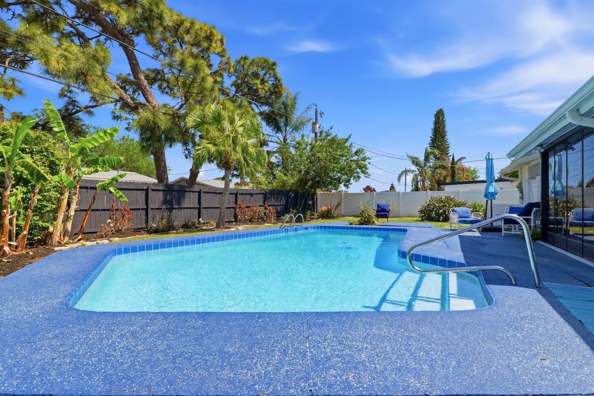 Добре дошли в мястото за кратка почивка в Намасте! • Отопляем басейн (настроен на 85° през зимата) • Напълно ограден частен двор • Обновена кухня (всички удобства) • 1600 кв. фута, едноетажно • Паркинг за 4 превозни средства • Изключително безопасен квартал • Грил Блекстоун • Пералня/сушилня • Подходящо за бебета и деца • Подходящо за домашни любимци • Обособено работно пространство • Предоставени са игри • 17 минути до плажа • 10 минути до центъра на Мелбърн • 6 минути до Флорида Тех (FIT) Изпратете ни съобщение за сезонни отстъпки и промоции!