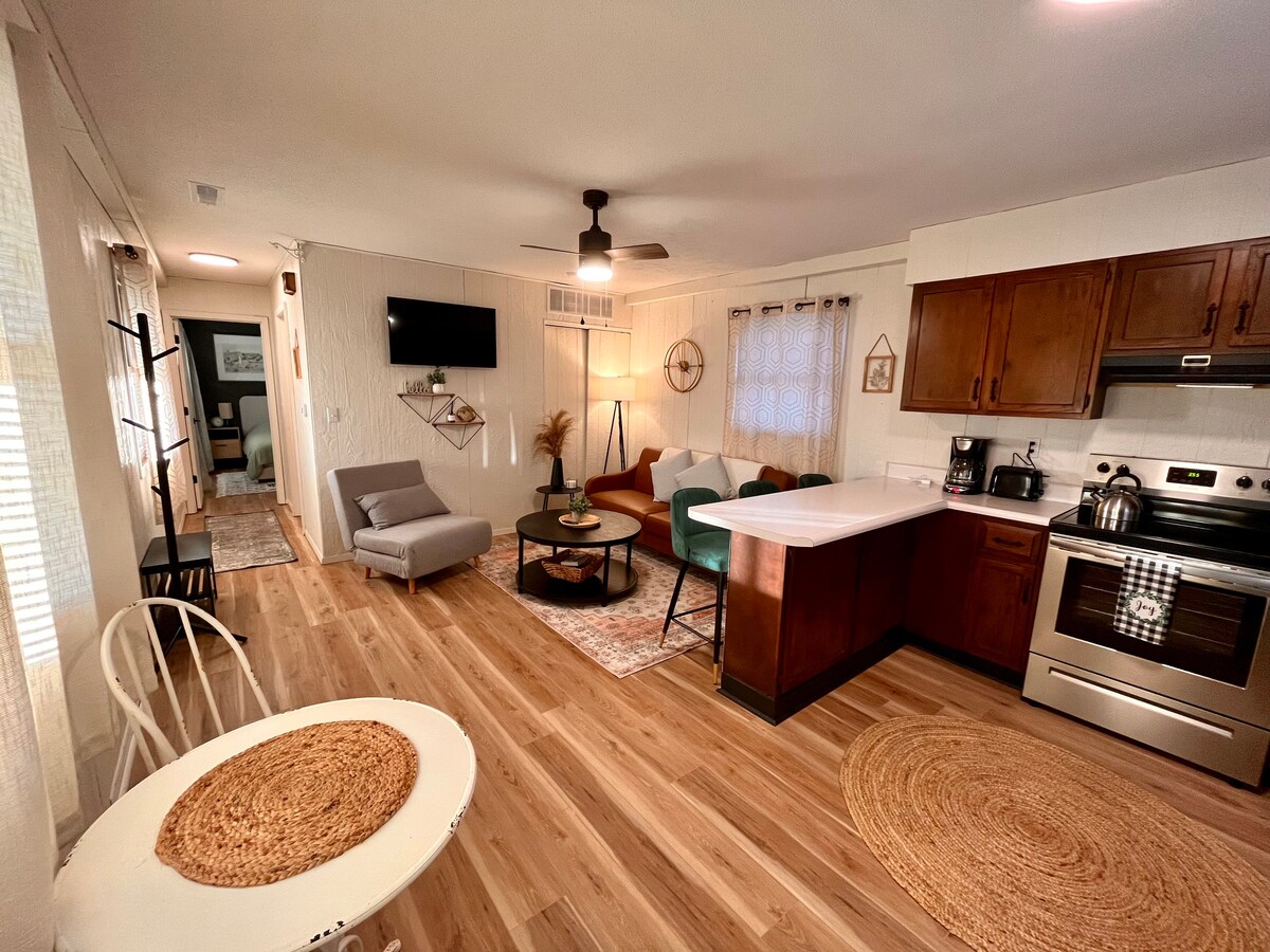 Разположена в покрайнините на града, и само на кратко разстояние до всичко в града, къщата за гости в семейната ни ферма е идеалният престой. Това е старомодно и уютно, но удобно за магистралата, пазаруването, ресторантите и хранителните стоки. Ще се почувствате като у дома си, независимо дали се наслаждавате на филм, ще седите на предната веранда и ще гледате залеза или ще приготвяте закуска в пълната ни кухня. Добре дошли във вашата ферма далеч от дома! Близо до летището! Точно до междущатската магистрала 2 минути от Walmart