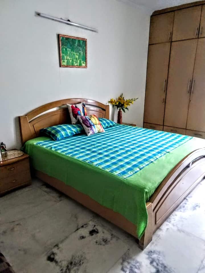 Къщата ми е в сърцето на Южен Делхи... много близо е до пазарите... метростанция, свързваща се с цял Делхи. Най - важното е да настанявам само гости от женски пол.