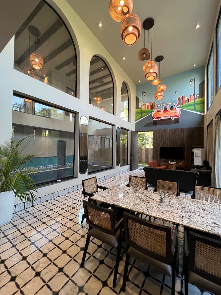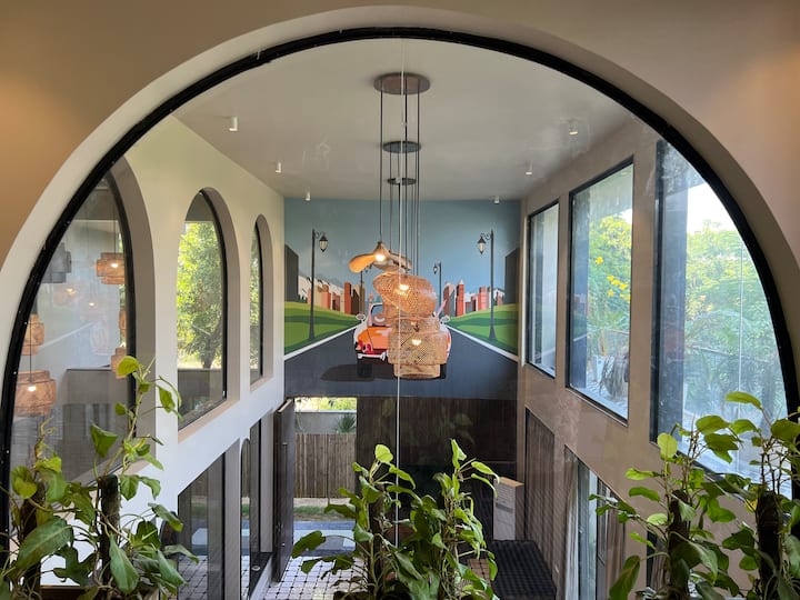 Добре дошли в Hangar 001, първокласна дуплексна вила 3BHK само на 500 метра от терминал 2 на летище Джайпур. Сгушена в луксозен квартал със зашеметяваща гледка към летището, тази вила предлага идеалното съчетание от лукс, уединение и модерен комфорт.