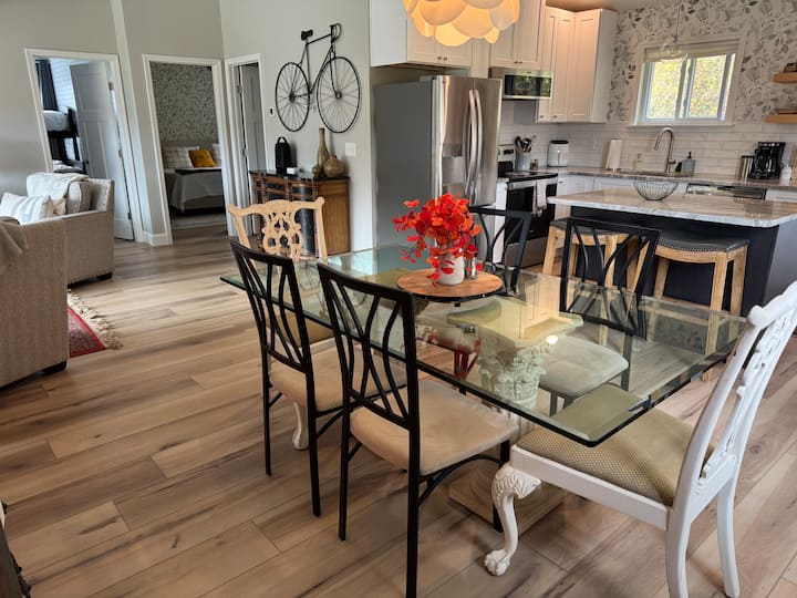 Тази къща за гости с 2 спални и 1 баня е най-подходяща за двойки, малки семейства и групи. Мястото за престой е с площ от 88 кв. м, а отворената концепция и сводестите тавани правят мястото да изглежда много по-голямо. Напълно обзаведено с допълнително удобни легла, спално бельо и мебели. Кухненското пространство е готово за вас, за да приготвите (или претоплите) страхотно ястие. Считайте го за напълно функционален дом, далеч от вашия. 😊