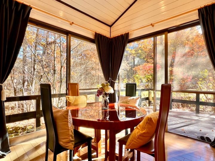 Ще се чувствате като у дома си, защото стаята е напълно оборудвана. Това със сигурност ще бъде място, където можете да създадете много спомени, като гледате филми и спорт на големия телевизор или играете махонг с приятелите си. Освен това, защо да не се насладите на красивите сезонни пейзажи на Каруизава от просторната тераса.