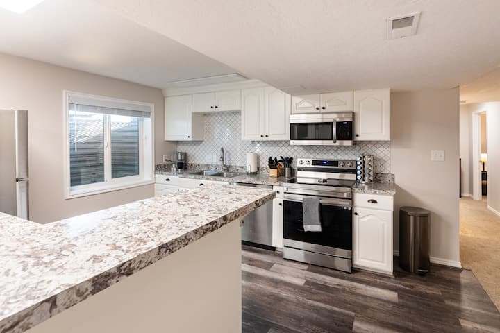 Добре дошли в нашия наскоро актуализиран апартамент с 2 легла и 2 бани 1910 кв. фута сутерен.