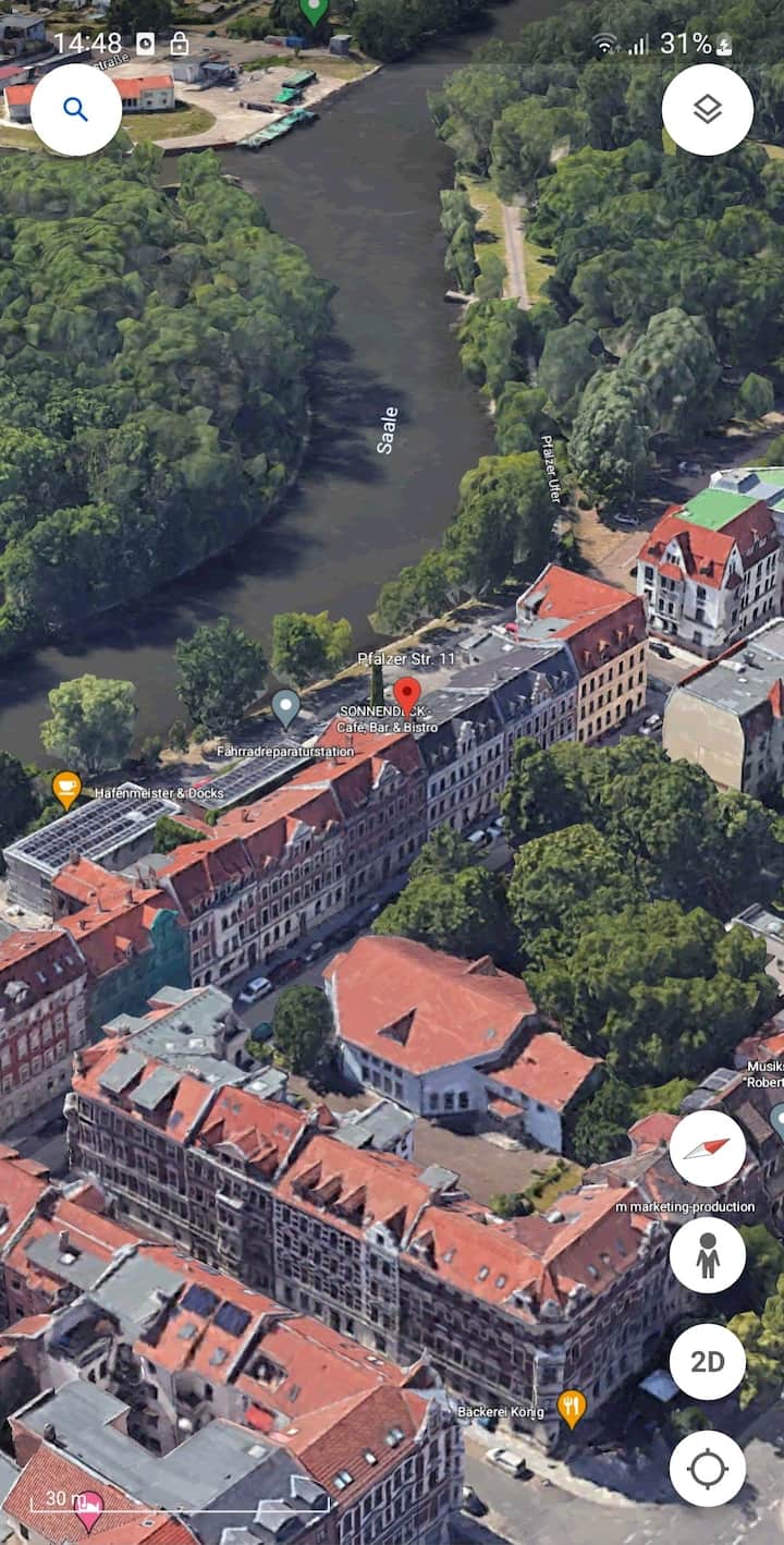 Изглед към Заале! Централно, но все пак сред зеленина!
