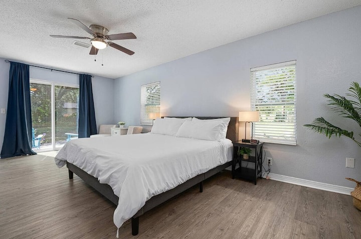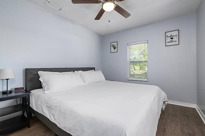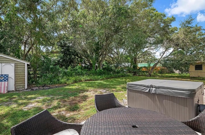 Самостоятелен дом, 3 легла и 2 пълни бани. Настанява 8 души удобно. 2 стаи с легла Kings, трета спалня с двойно легло queen size. Всекидневна Диван и допълнително разтегателно легло са на разположение. Насладете се на релаксиращо потапяне в хидромасажната вана. Голям ограден заден двор с мебели за вътрешен двор за събирания на барбекю. По - малко от 12 минути до плажа Сиеста Кий. 5 минути до болница „Сарасота Мемориал“ и близо до пътеката „Наследството “!