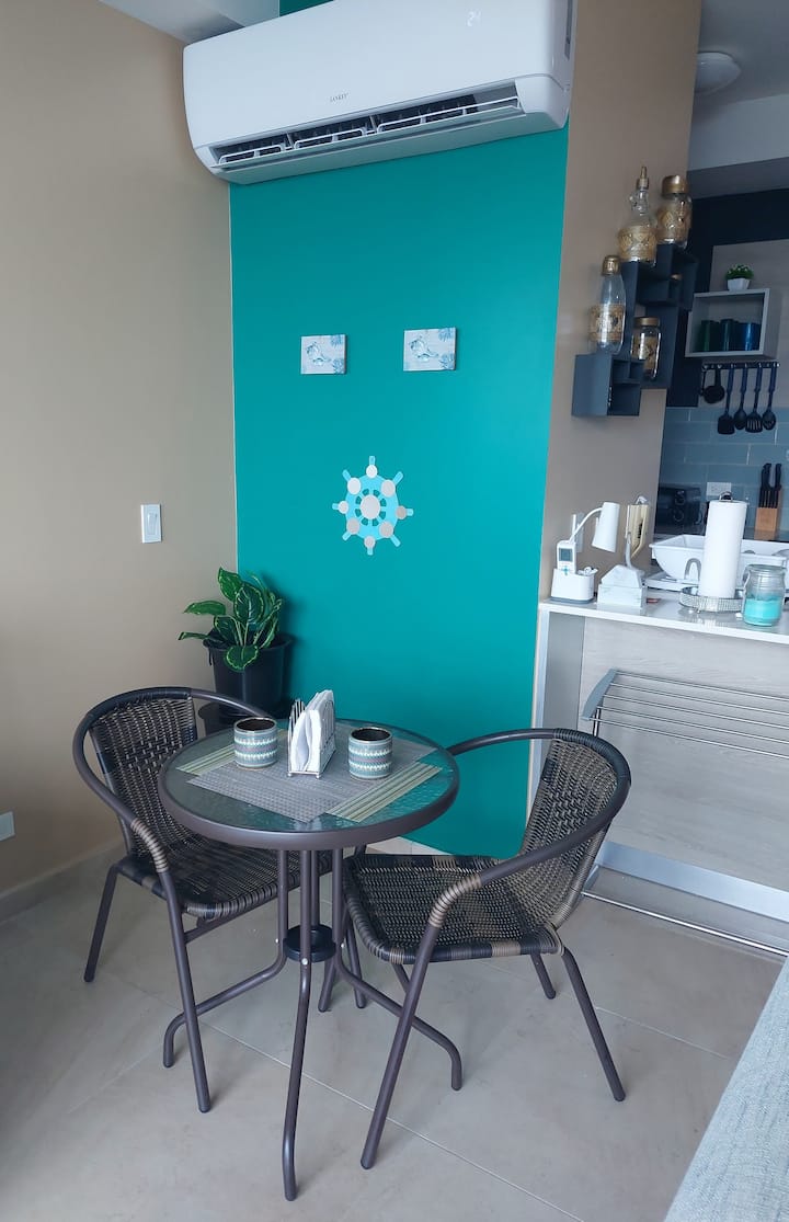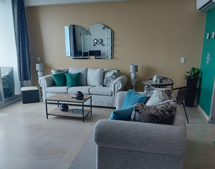 Този уютен апартамент разполага с внимателно подбрани модерни цветове и обзавеждане, ръчно рисуван стенопис на „Плая Горгона“ от тавана до пода и прекрасни гледки към близките градове, планини и крайбрежието на Тихия океан.