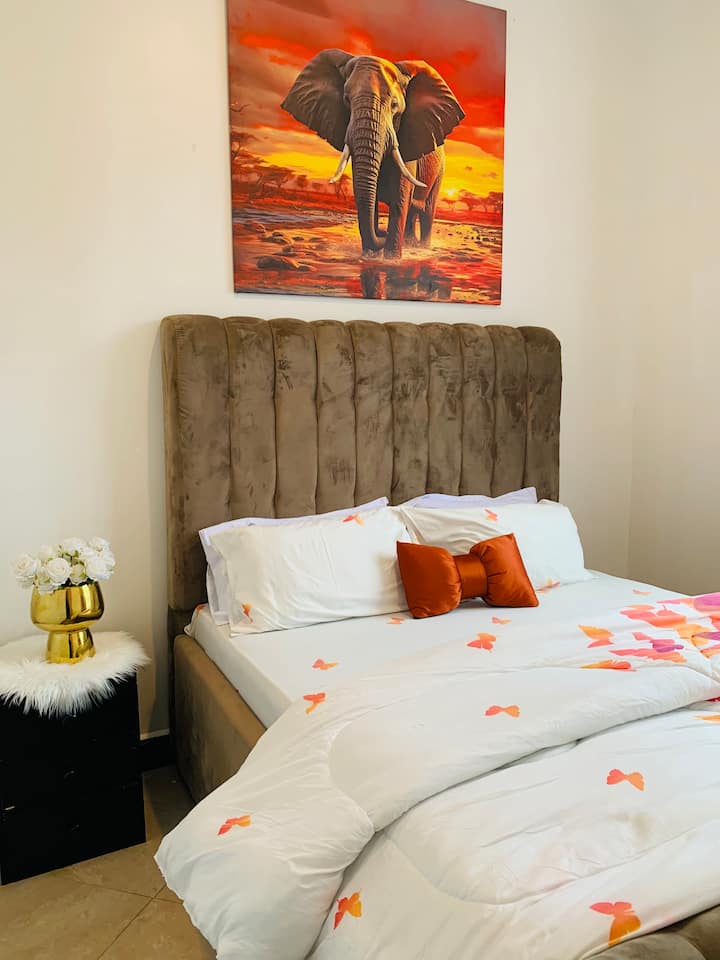 Добре дошли във вашия тропически дом далеч от дома. Този стилно обзаведен и напълно оборудван апартамент с една спалня, разположен на 11-ия етаж в Мадженго Куа Мтей, предлага панорамен изглед към планината Килиманджаро и безпроблемен достъп до най-добрите атракции в Моши.