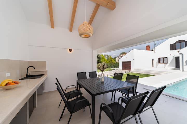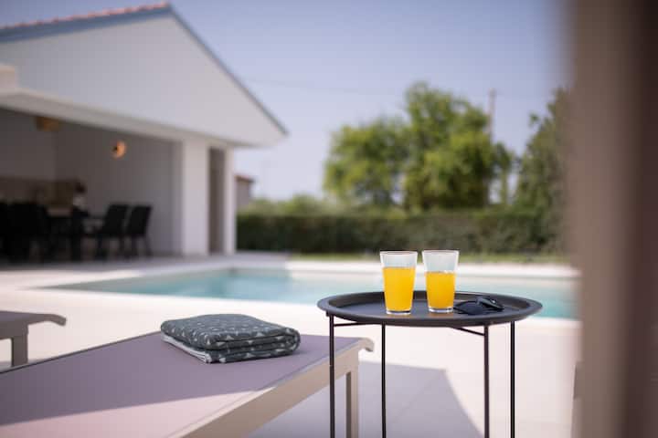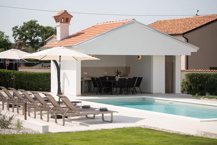 Добре дошли във Вила Боса, мечтаното ви бягство в приказния крайбрежен град Пореч! Само на 5 минути с кола от плажа и центъра на града, нашата просторна вила е напълно оборудвана за релаксираща почивка. Насладете се на чисто новия солен басейн 10х4 и градинска кухня, заобиколени от природа и спокойствие. Независимо дали планирате семейно уединение или незабравимо бягство с приятели, Villa Bosa е идеалното убежище за вашите ваканционни стремежи.
