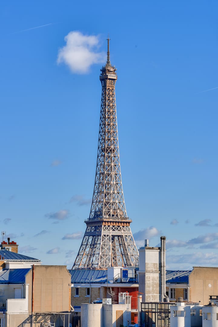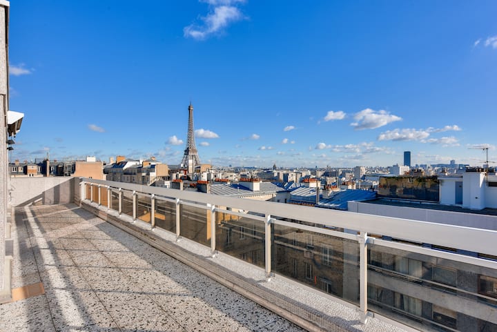 Прекрасна тераса с изглед към Айфеловата кула и Трокадеро