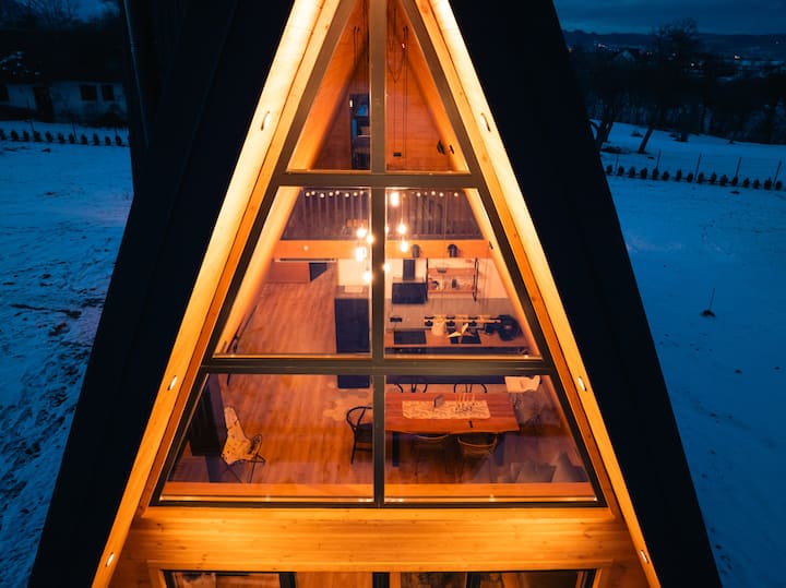 Vino Chalets (Air Chalet) - дървена колиба с триъгълна форма в Бран