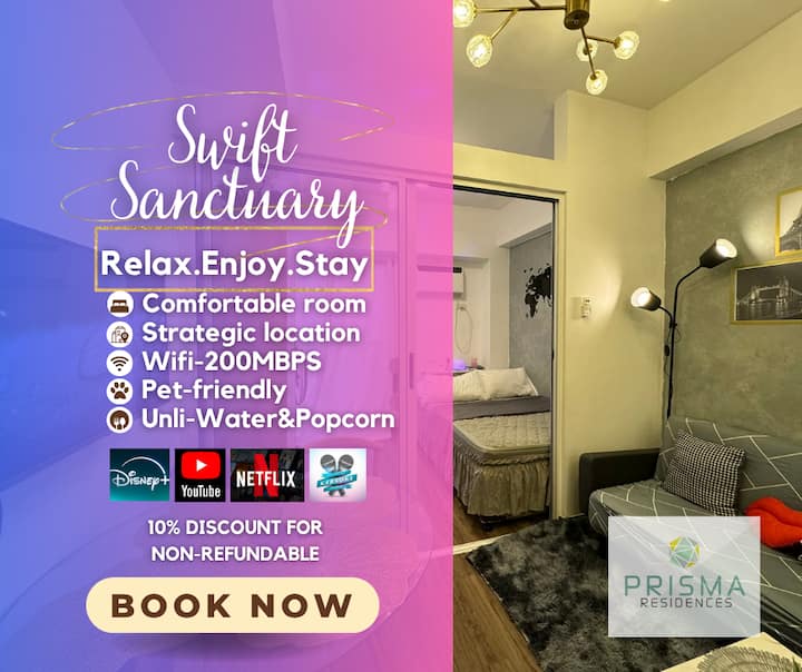 Запалих кибритена клечка и ви оставих без думи. Искате ли да останете тук? Ще ви дам причина. Харесвате Swift Sanctuary, нали? Място за отдих, насладете се на бърза разходка от BGC, DAP - Pasig, RIzal Medical Center, NAIA Airport, Ortigas Center, Estancia, Embassy of Korea, Megamall. Апартамент в жилищен блок с пълни удобства, който никога няма да излезе от мода. Ще се радвам да ви приема скоро! Резервирайте сега!