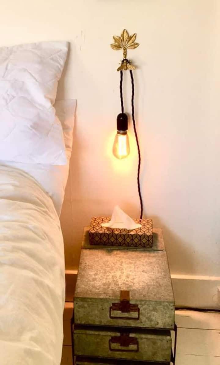 Има двойно легло с чисто спално бельо, две кърпи, отопляемо одеяло, ако е необходимо, затъмнение на щората, ако искате стаята да е по - тъмна.