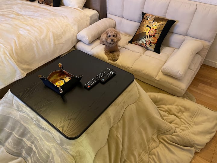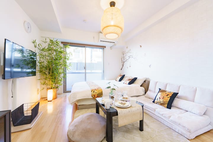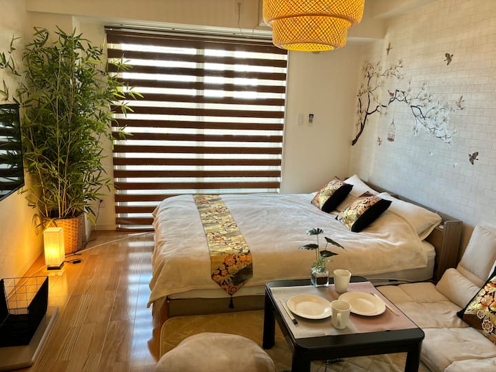 На 1 минута от гарата/Между Токио и Нарита/Стая 101 с японско модерно легло Queen size и маса за отопление с 2 велосипеда