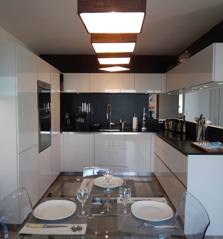 Мястото за настаняване е напълно обзаведено и оборудвано (съдомиялна машина, фурна, аспиратор, микровълнова фурна, хладилник, фризер). Обърнахме специално внимание на удобствата и декорацията, така че престоят ви да ви остави незабравим спомен. Апартаментът има достъп до интернет.