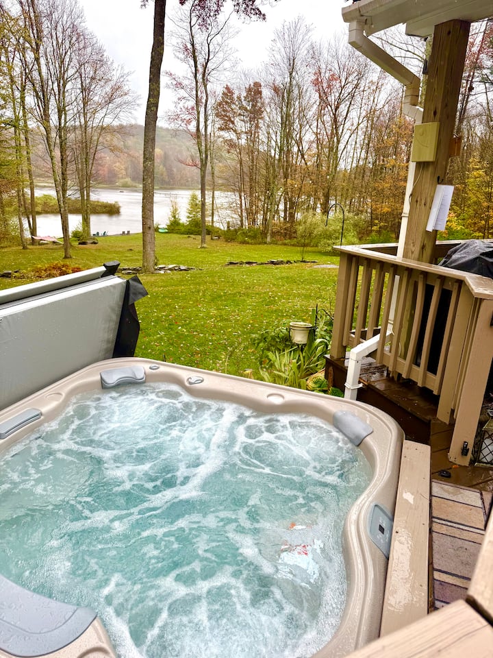 o хидромасажна вана с изглед към езерото;
