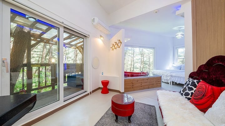 Това е частно и тихо лечебно пространство с концепцията за частен изглед към гората, близо до ски курорта Welly Hilli, Water Planet.